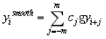 移动平均是最基本的平滑方法。它通过取当前点及其邻域点的平均值来平滑光谱。该方法可以平滑高频噪声,但对一些尖刺噪声不敏感。公式如下: