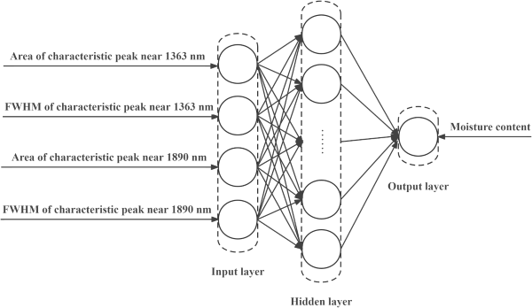 在模型建立方面,基于BP神经网络检测聚酯织物的水分含量,BP神经网络的整体结构如图2所示。