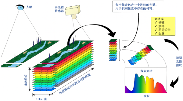 不同物质之所以呈现出不同的光谱曲线,是因为它们对电磁波的吸收、反射与透射特性取决于其分子结构和物理化学性质。分子中的化学键会在特定波长产生振动或转动吸收,从而形成特征吸收峰;晶体结构和电子能级也会影响光的散射与吸收,使材料在某些波段表现出独特的反射特性。同时,宏观状态如粗糙度、含水量和密度等也会进一步改变光谱表现。因此,不同物质在光谱维度上具有独特的“光谱指纹”,高光谱成像正是通过捕捉这些差异,实现物体识别和定量分析。