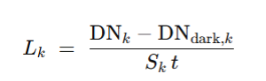 通过积分球/标准光源标定可得到每个波段的响应系数 ak,bk,把 DN 映射到 L:
