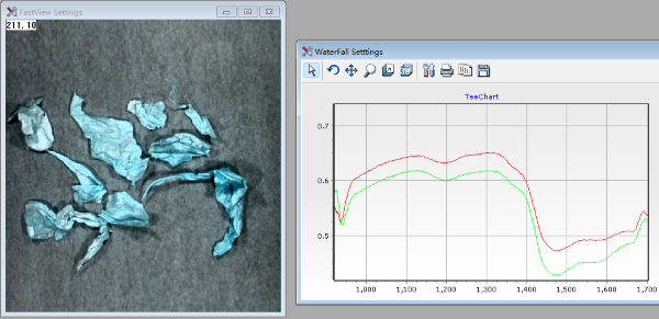 以不同烟叶高光谱数据为例(图1),能够看出,原始未校准下的图像背景和样品区域整体亮度受光源分布和仪器响应的影响。从DN值上无法判断样品曲线的物质特征,校正后该波段下的图像整体灰度分布更加均匀,目标区域与背景对比更加清晰,消除了光源和探测器响应带来的系统性干扰。且经过校正后的反射率曲线,纵轴归一化到 0–1 区间,代表物体在不同波长下的真实反射比例。此外,从图1也能够看出各 ROI 曲线由于物质不同,所反映出的光谱特征也不同。