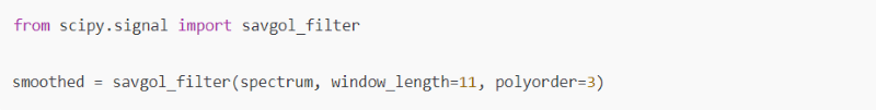 SG平滑的核心思想是对光谱信号在一个滑动窗口内进行多项式拟合,用拟合后的值替换原始光谱点。与简单的移动平均相比,SG平滑不仅可以去除高频噪声,还能保持光谱峰形和信号的局部特征。该公式如下:在窗口大小为2m+1的条件下,对第i个光谱点的平滑为:
