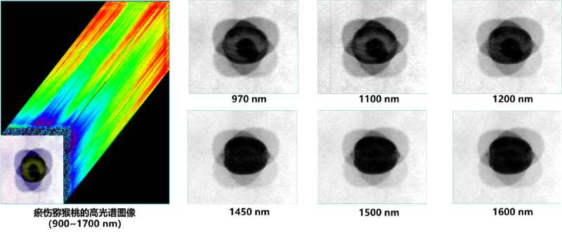 瘀伤猕猴桃的高光谱图像及特定波长的灰度图像